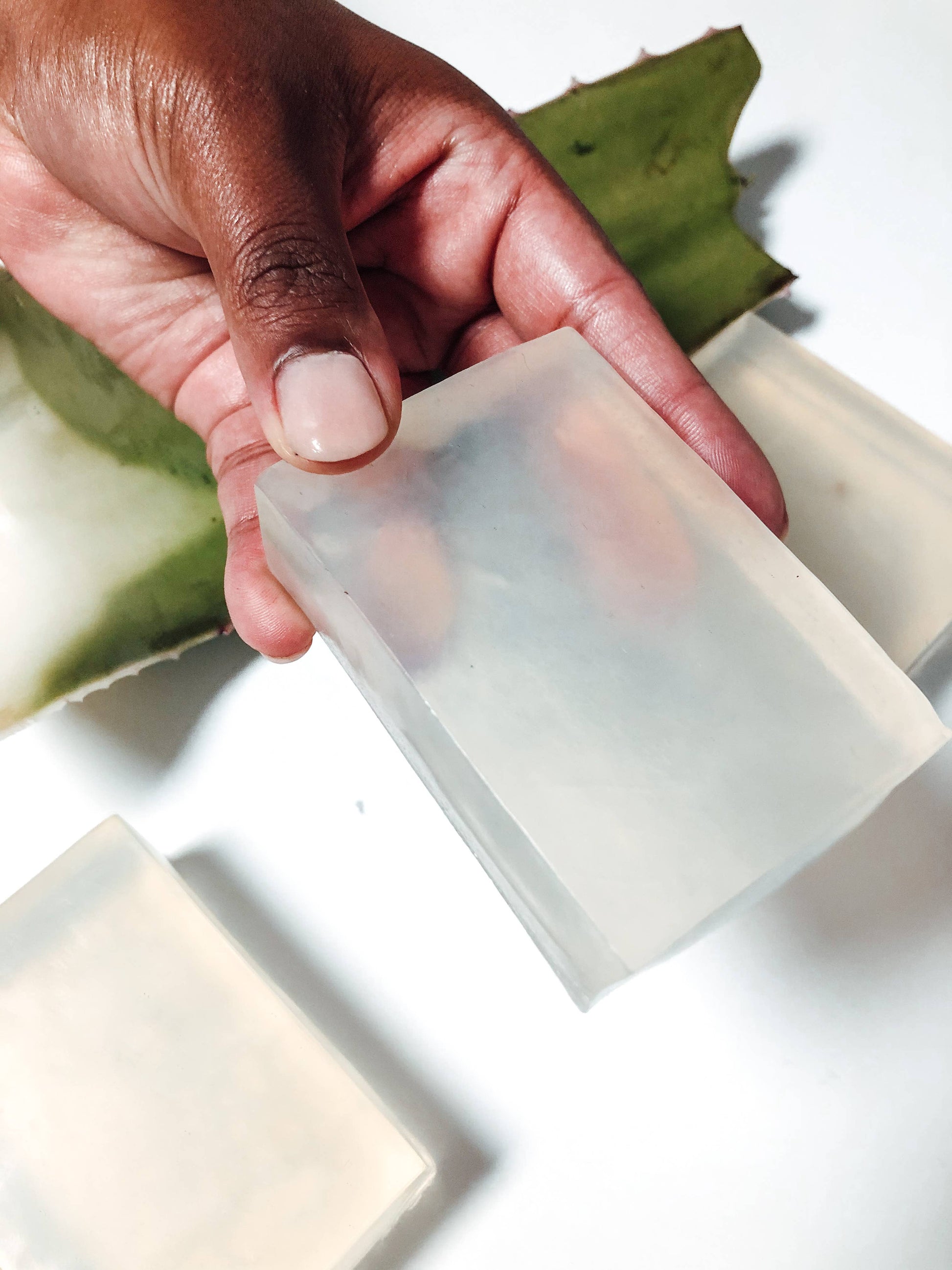 Aloe Vera: Clear soap water-based infused with aloe vera juice
