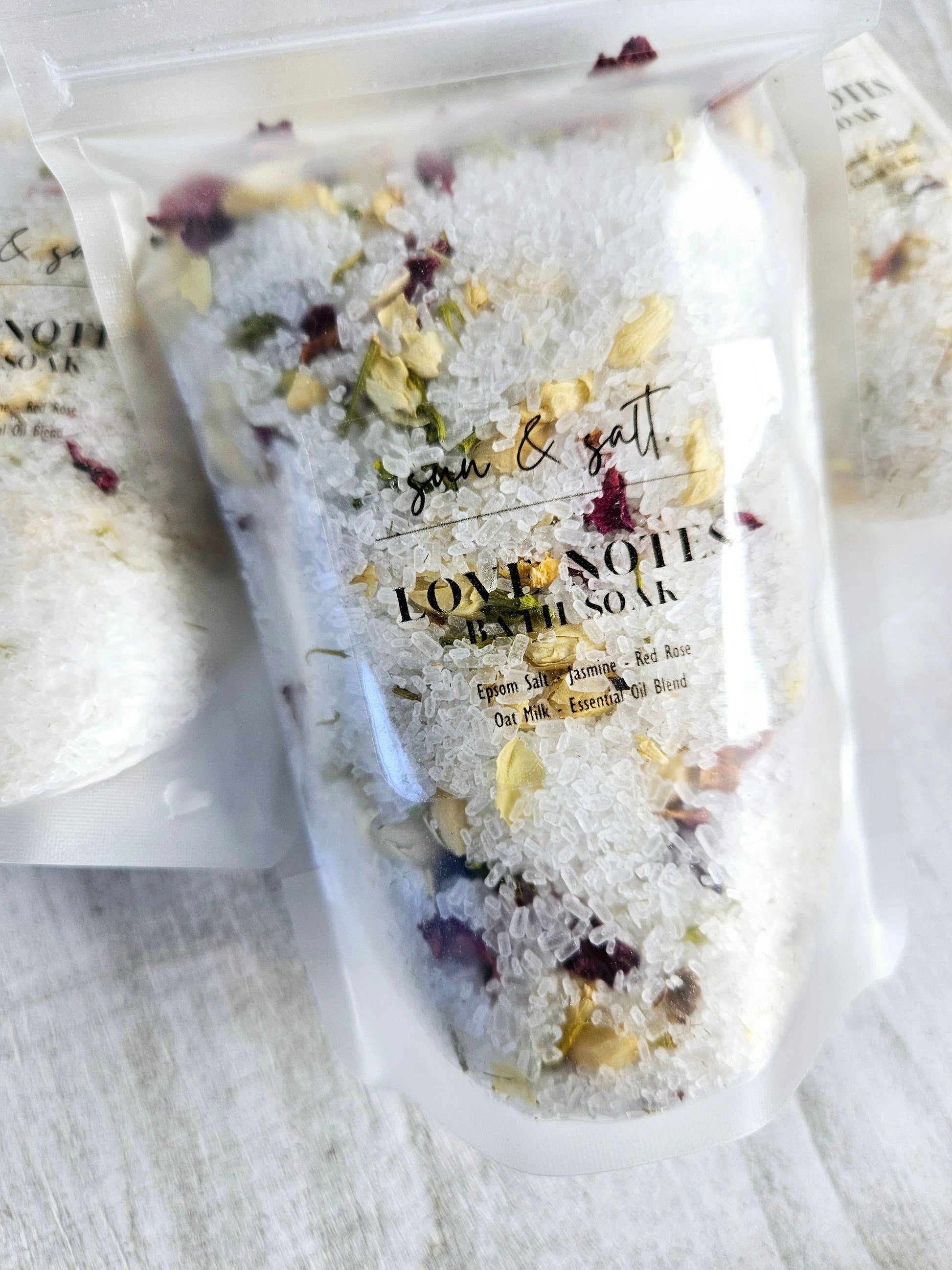 Wrap yourself in warmth and romance. A dreamy blend of our mineral rich salts, rose petals, and heart opening essential oils crafted to nourish your skin and uplift your spirit. This blend is all things sweet and whimsical. This soak turns your bath into a tender love letter to the body and soul.